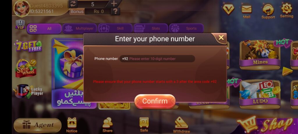 - Bonuses: Claim a 5-rupee welcome bonus, daily login bonuses, weekly bonuses (every Monday), and VIP bonuses for deposits of 1000 PKR or more.